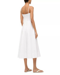 SIZE & FIT - Fits true to size, order your normal size - Fitted at the bust and waist, relaxed through the hips - Slightly stretchy fabric - Designed to hit at mid calf - Approx. 49" from high point shoulder to hem, based on a size 4 - Model measurements: 5'10" height, 33.5" bust, 23.5" waist, 34.5" hips, wearing a size 4 PRODUCT DETAILS - Straight neck - Back zip closure - Adjustable shoulder straps - Fit-and-flare silhouette - Imported Web ID: 5423934 MATERIAL & CARE - 98% cotton/2% elastane - Machine wash