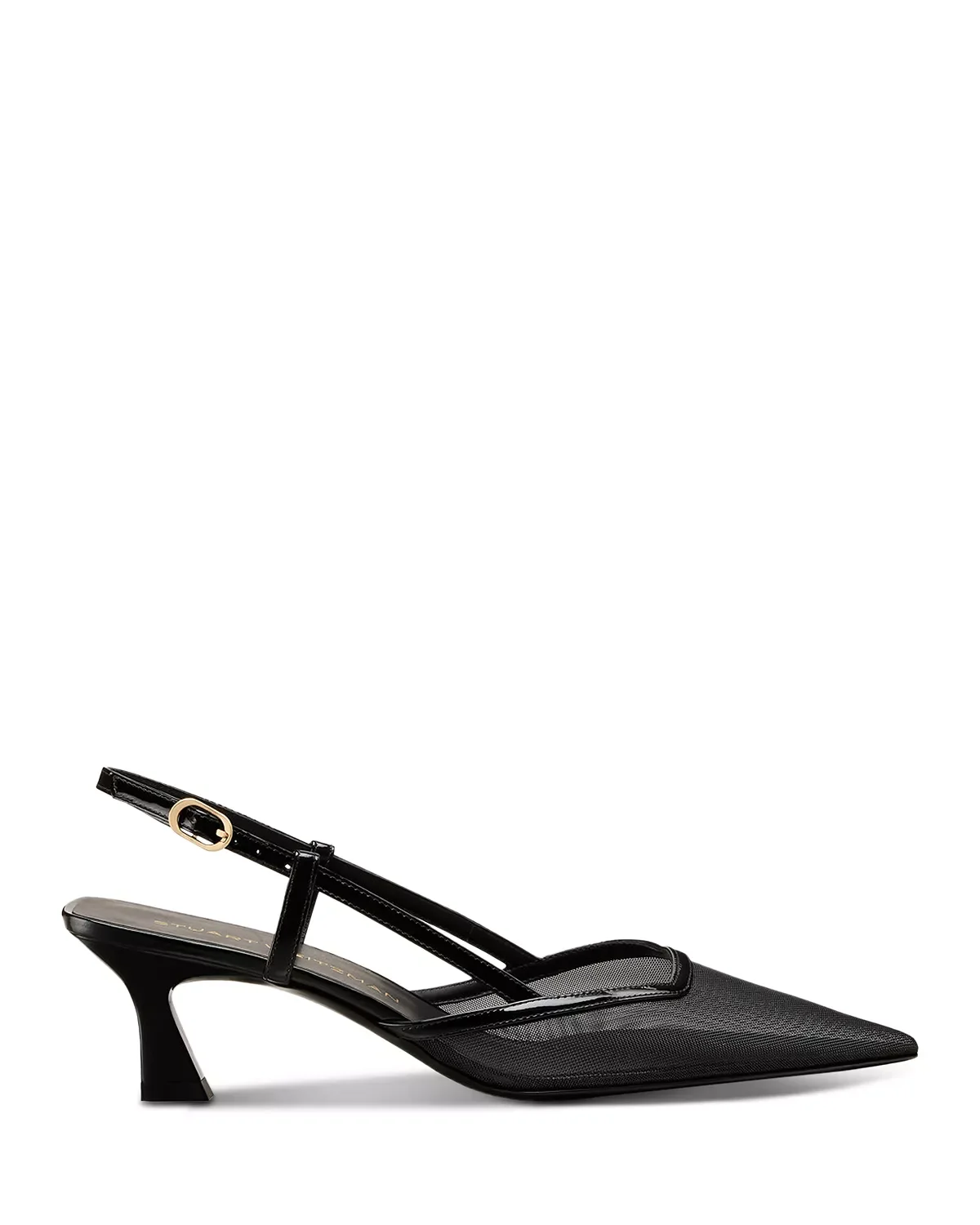 PRODUCT DETAILS - Fits true to size, order your normal size - Pointed toe - Buckled slingback strap - 1.96" heel - Nylon mesh upper, patent leather trim, leather/nylon/patent leather mesh lining, leather sole - Made in Spain Web ID: 5991897