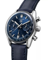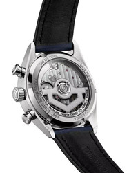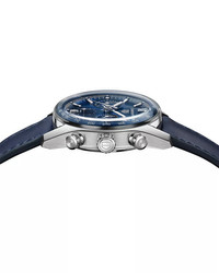 PRODUCT DETAILS - Stainless steel; sapphire crystal - Case size: 39mm - Deployant clasp closure - Water resistant to 10 ATM - Automatic movement - Blue chronograph dial with date display at 6 o'clock - Three sub dials - Blue leather strap - Manufacturer's 2-year limited warranty - Photo may have been enlarged and/or enhanced. - Made in Switzerland Web ID: 4754140