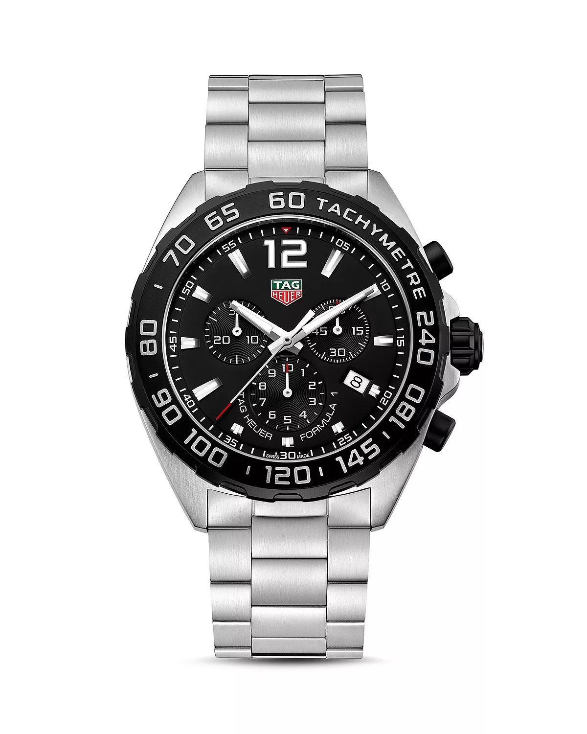 SIZE & FIT - In 1860, Edouard Heuer started designing timepieces in Saint-Imier, Switzerland at the age of 20. The crown-operated, keyless winding system was his first patent, - which changed the course of watchmaking history. Continuing his pioneering legacy, the Swiss luxury brand has gone on to introduce numerous innovative patents - and timeless designs, deeming it one of the most advanced and luxurious watchmakers in the world. PRODUCT DETAILS - Epitomizing TAG Heuer's close partnership with Formula 1, this ultra-performance sports chronograph is built for speed. - Features a 43mm tonneau-shaped case fronted by a black dial framed by a tachymeter bezel in black titanium carbide-coated steel, material that's tough enough to be used in Formula 1 racing - Fluted crown allows easy handling even with racing gloves and the double-security bracelet is designed with a driver extension to fit over a racing suit - Stainless steel; sapphire crystal - Case size: 43mm - Deployant buckle closure - Water resistant to 20 ATM - Quartz chronograph movement - Black chronograph dial; tachymeter bezel; date display at 4 o'clock - Brushed stainless steel link bracelet - STYLE #CAZ1010.BA0842 - Manufacturer's 2-year limited international warranty - Photo may have been enlarged and/or enhanced - Made in Switzerland Web ID: 1681644