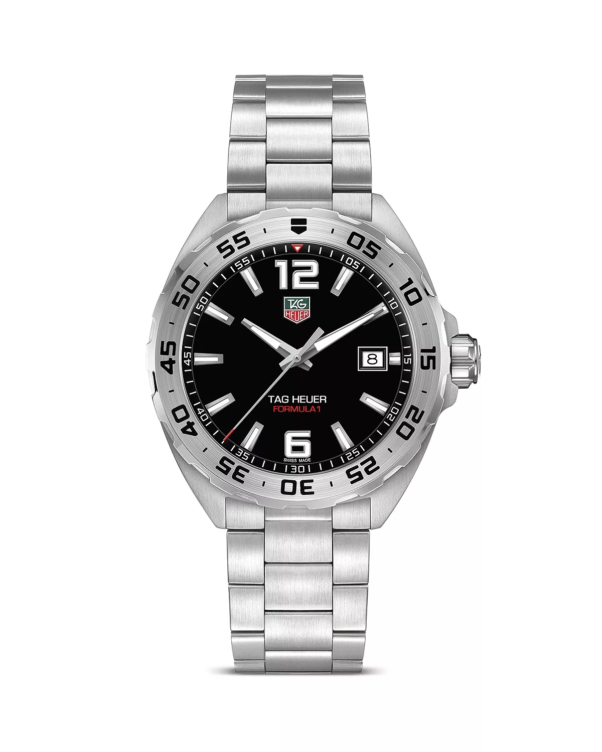SIZE & FIT - In 1860, Edouard Heuer started designing timepieces in Saint-Imier, Switzerland at the age of 20. The crown-operated, keyless winding system was his first patent, - which changed the course of watchmaking history. Continuing his pioneering legacy, the Swiss luxury brand has gone on to introduce numerous innovative patents - and timeless designs, deeming it one of the most advanced and luxurious watchmakers in the world. PRODUCT DETAILS - From the TAG Heuer Formula 1 collection - Built on a 41mm-diameter steel case with pressure-proofing screw-down crown and case back, and triple-row steel bracelet with rigorously tested safety clasp - The shimmering black dial sports the TAG Heuer shield in the house's signature white, green and red, and boldly luminous hour markers and hands - Bezel turns only in one direction, allowing error-free timing of activities for up to an hour - Stainless steel; sapphire crystal - Case size: 41mm - Water resistant to 20 ATM - Deployment clasp - Quartz movement - Back opalin dial - Date window - Unidirectional brushed steel bezel with engraved numerals - STYLE #WAZ1112.BA0875 - Photo may have been enlarged and/or enhanced - Manufacturer's 2-year limited warranty - Made in Switzerland Web ID: 1571716
