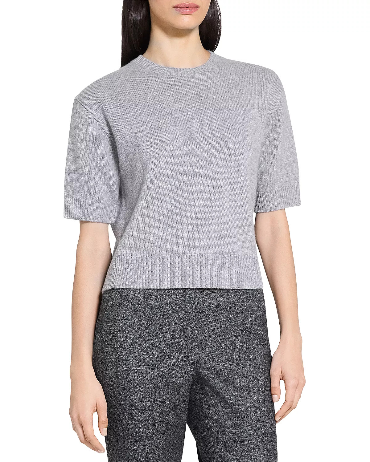 SIZE & FIT - Fits true to size, order your normal size - Model measurements: 5'10" height, 33.5" bust, 23.5" waist, 34.5" hips, wearing a size small PRODUCT DETAILS - Ribbed crewneck - Short sleeves, ribbed cuffs - Pullover style - Ribbed hemline - Imported Web ID: 5263497 MATERIAL & CARE - 100% cashmere - Dry clean