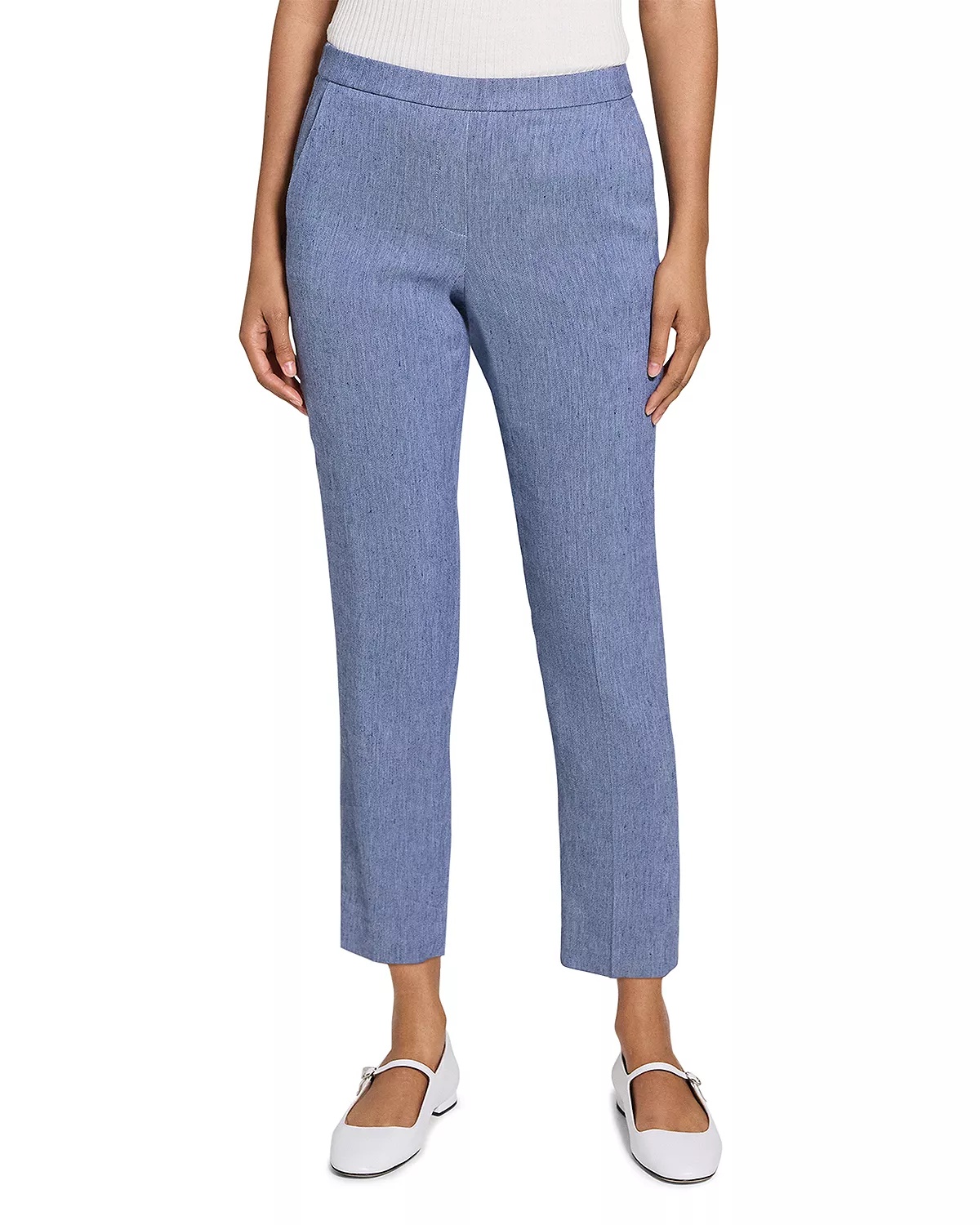 SIZE & FIT - Fits true to size, order your normal size - 16" rise, 26" inseam, 13.25" leg opening, based on a size 4 - Model measurements: 5'10" height, 33.5" bust, 23.5" waist, 34.5" hips, wearing a size small PRODUCT DETAILS - Elasticized back waist - Pull-on style - Side slip pockets, back welt pocket - Cropped silhouette - Imported Web ID: 5518052 MATERIAL & CARE - 54% linen/43% viscose/3% elastane - Hand wash