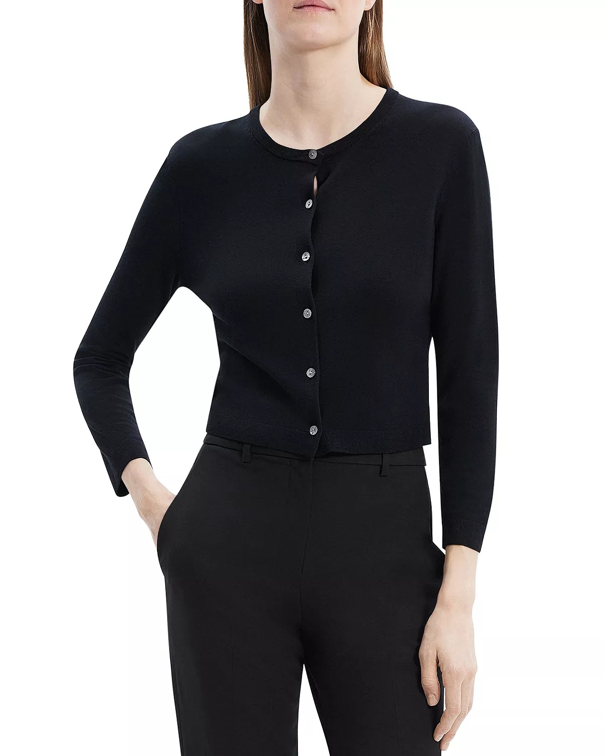 SIZE & FIT - Fits true to size, order your normal size - Designed for a slim fit - Approx. 18.5" from high point of shoulder to hem, based on a size small - Model measurements: 5'10" height, 33.5" bust, 23.5" waist, 34.5" hips, wearing a size small PRODUCT DETAILS - Crewneck - Long sleeves - Front button closures - Ribbed cuffs and hem - Cropped silhouette - Imported Web ID: 5222307 MATERIAL & CARE - 100% wool - Dry clean