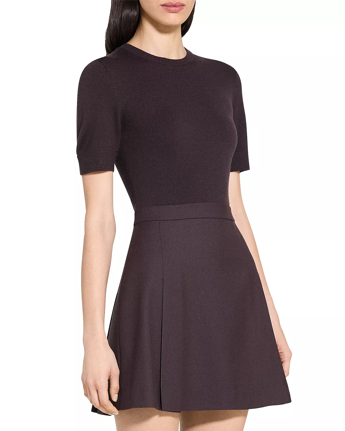 SIZE & FIT - Fits true to size, order your normal size - Designed for a mini length - Approx. 33" length - Model measurements: 5'10" height, 33.5" bust, 23.5" waist, 34.5" hips PRODUCT DETAILS - Round neck - Short sleeves - Knit bodice - Pleated miniskirt - Pullover style - Imported Web ID: 5710564 MATERIAL & CARE - 40% wool/29% polyester/28% viscose/3% spandex - Dry clean