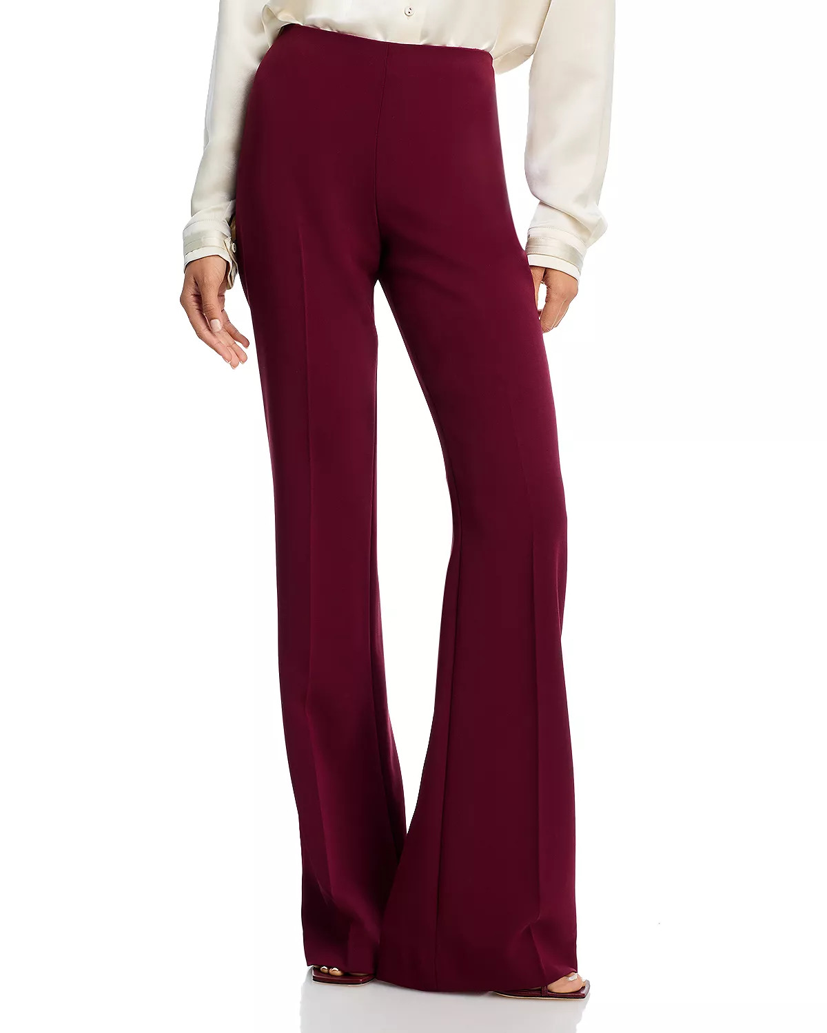 PRODUCT DETAILS - Fits true to size, order your normal size - 11" rise, 35.5" inseam based on a sample size 4 - Model measurements: 5'10" height, 33.5" bust, 23.5" waist, 34.5" hips, wearing a size 2 - High rise, flat front, darted back - Concealed side zip with hook-and-eye closure - Center-leg creasing, flared-leg silhouette - Unlined - Bloomingdale's exclusive - Imported Web ID: 1748032 MATERIAL & CARE - 70% triacetate 30% polyester - Dry clean