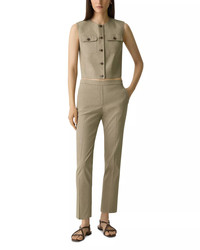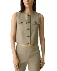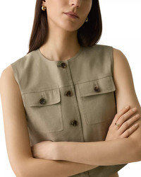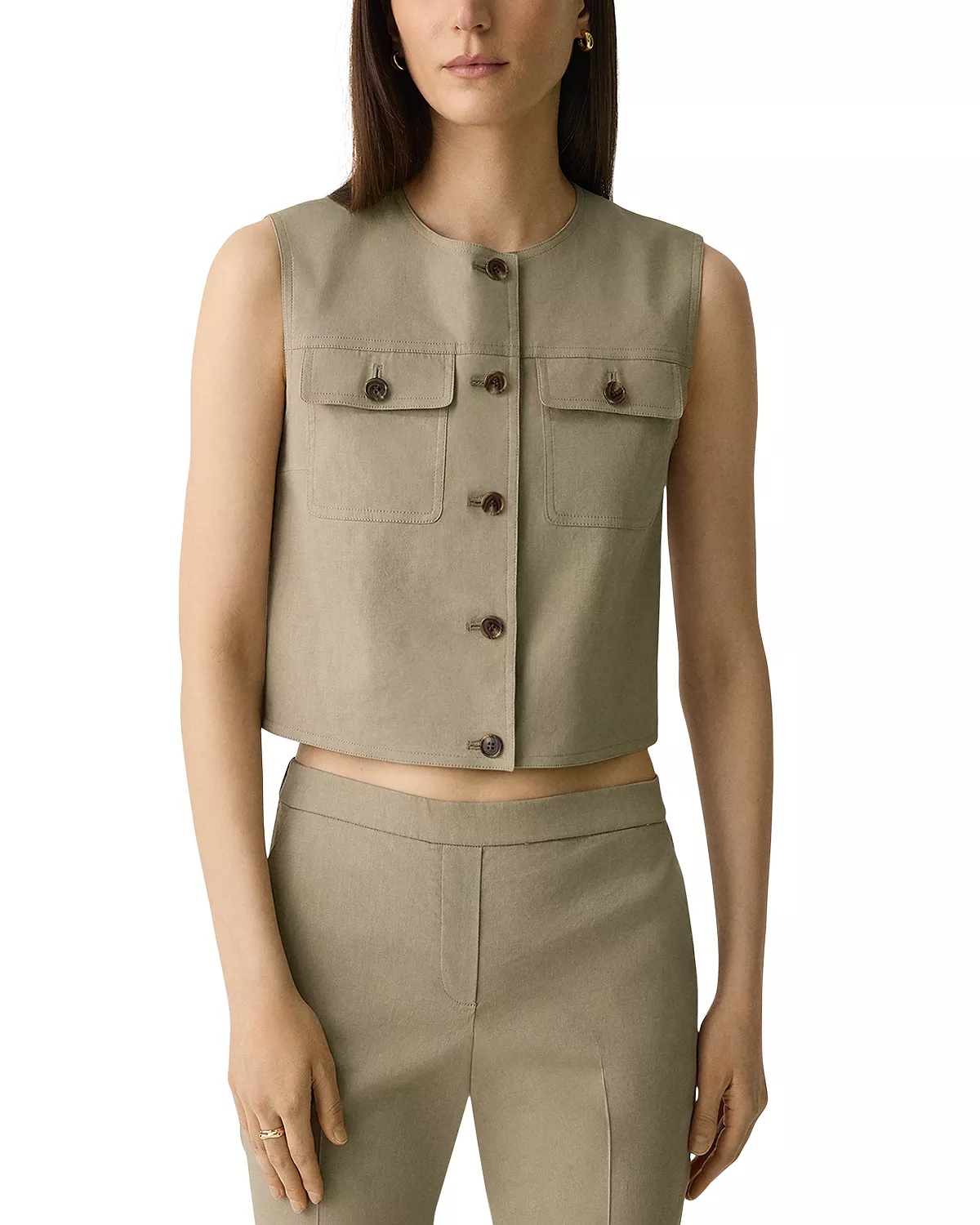 SIZE & FIT - Fits true to size, order your normal size - 18.4" length, based on a size 4 - Model measurements: 5'10" height, 33.5" bust, 23.5" waist, 34.5" hips, wearing a size 4 PRODUCT DETAILS - Round neck - Front button placket - Sleeveless - Two chest button flap patch pockets - Cropped silhouette - Imported Web ID: 5564350 MATERIAL & CARE - 62% linen/36% viscose/2% elastane - Dry clean