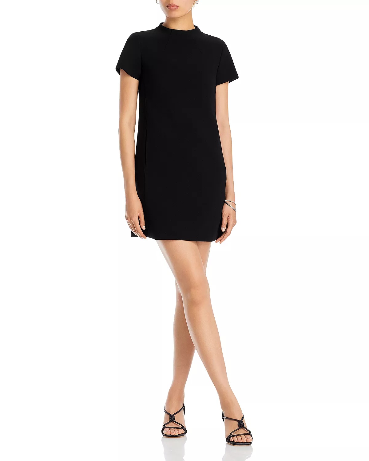 PRODUCT DETAILS - Fits true to size, order your normal size - Approx. 32" from back of neck to hem, based on a size 0 - Model measurements: 5'10" height, 33.5" bust, 23.5" waist, 34.5" hips, wearing a size 0 - Mock neck - Short sleeves - Side slit pockets - Mini shift silhouette - Please note that this dress will be delivered with a black b-tag attached, with instructions for removal included. If the b-tag is removed, the dress cannot be returned. - Lined - This item is part of our 100% Bloomingdale's collection, featuring exclusive pieces you won't find anywhere else. - Made in USA of Imported Materials Web ID: 1402639