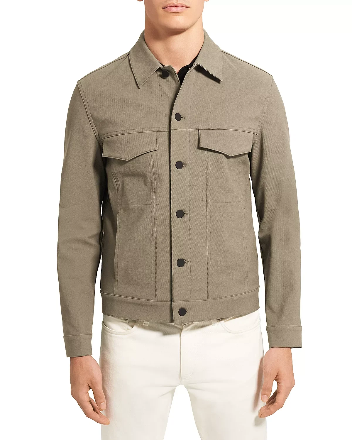 SIZE & FIT - Fits true to size, order your normal size - Designed for a regular fit - Model measurements: 6'2 height, 38" chest, 30" waist, 34" inseam, wearing a size medium PRODUCT DETAILS - This elevated iteration of the classic trucker jacket is crafted with a twill version of Neoteric, a breathable performance fabric that boasts four-way stretch for easy movement. - Point collar - Button-front closure - Long sleeves, button cuffs - Two front hand pockets, two flap pockets at chest - Unlined - Imported Web ID: 4360888 MATERIAL & CARE - 53%Cotton/ 39%nylon/ 8% spandex - Machine wash or dry clean