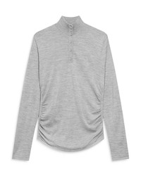 SIZE & FIT - Fits true to size, order your normal size - Designed for a slim fit - 25" length, based on a size small - Model measurements: 5'10" height, 33.5" bust, 25.5" waist, 34.5" hips, wearing a size S/4 PRODUCT DETAILS - Mock neck - Long sleeves - Front button closures - Shirred detailing at side seams - Imported Web ID: 5710570 MATERIAL & CARE - Merino wool - Dry clean