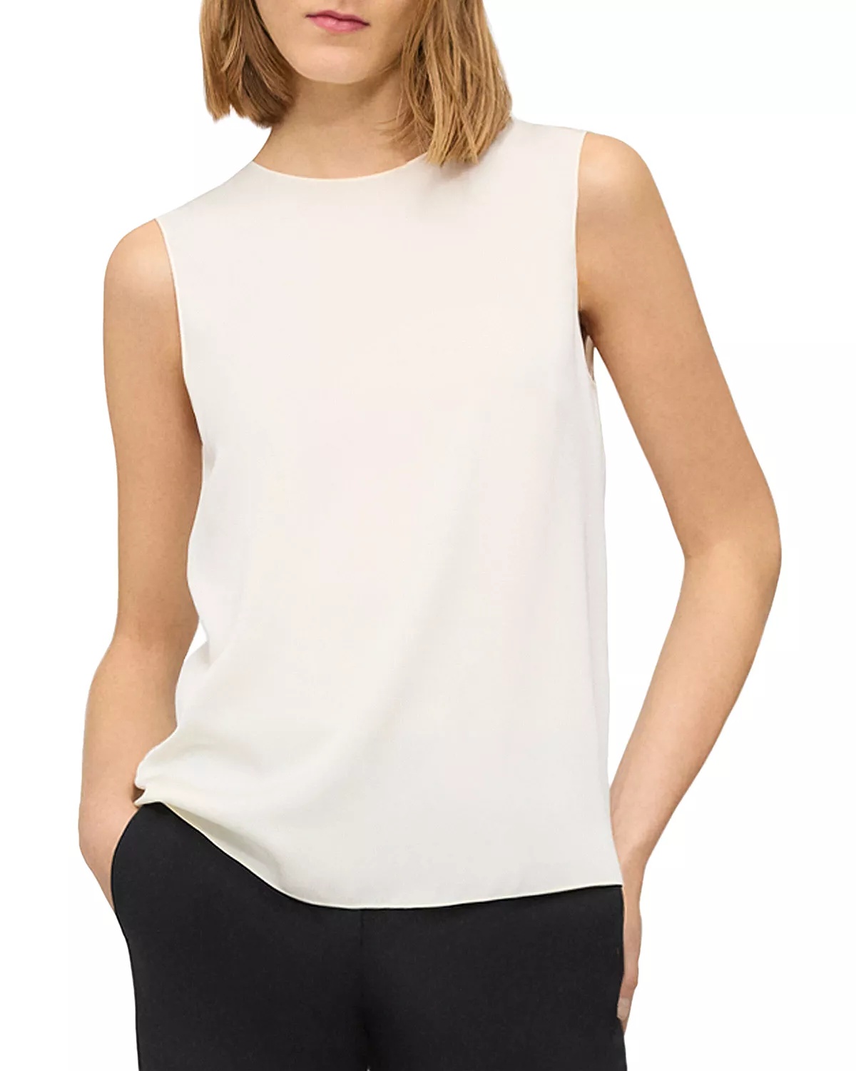 SIZE & FIT - Fits true to size, order your normal size - Approx. 23" long, based on a size small - Model measurements: 5'10" height, 33.5" bust, 23.5" waist, 34.5" hips, wearing a size small PRODUCT DETAILS - Crewneck - Sleeveless - Back keyhole with concealed hook-and-eye closure - Imported Web ID: 5442388 MATERIAL & CARE - 100% silk - Dry clean