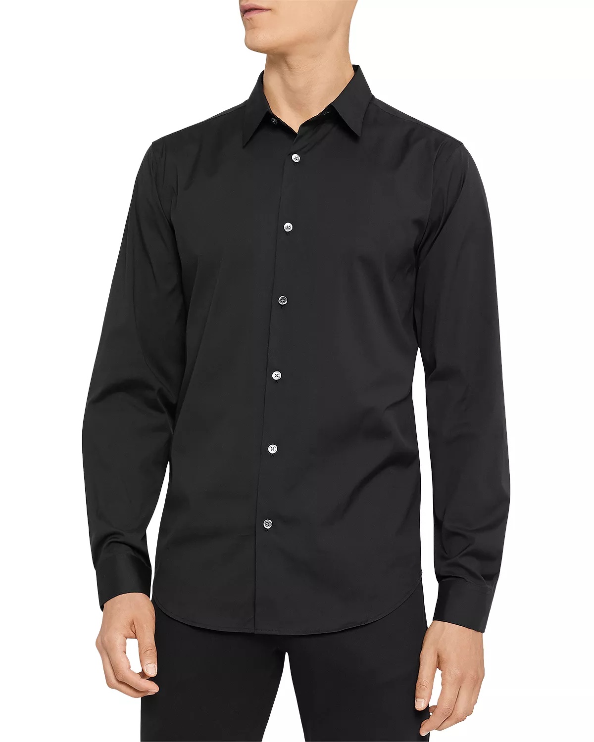 PRODUCT DETAILS - A tailored style with minimal detailing, the Sylvain shirt is designed with a structured point collar, two darts in the back for a refined fit, and an extended hem that easily tucks into your pants. - Cut from stretch cotton that looks crisp and keeps you comfortable year round - Point collar - Long sleeve - Barrel cuff - Imported Web ID: 4819932