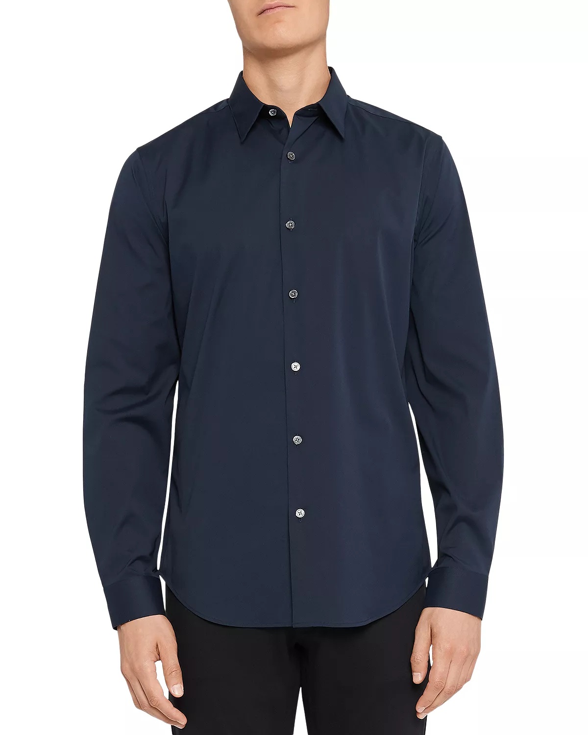 PRODUCT DETAILS - A tailored style with minimal detailing, the Sylvain shirt is designed with a structured point collar, two darts in the back for a refined fit, and an extended hem that easily tucks into your pants. - Cut from stretch cotton that looks crisp and keeps you comfortable year round - Point collar - Long sleeve - Barrel cuff - Imported Web ID: 4819932