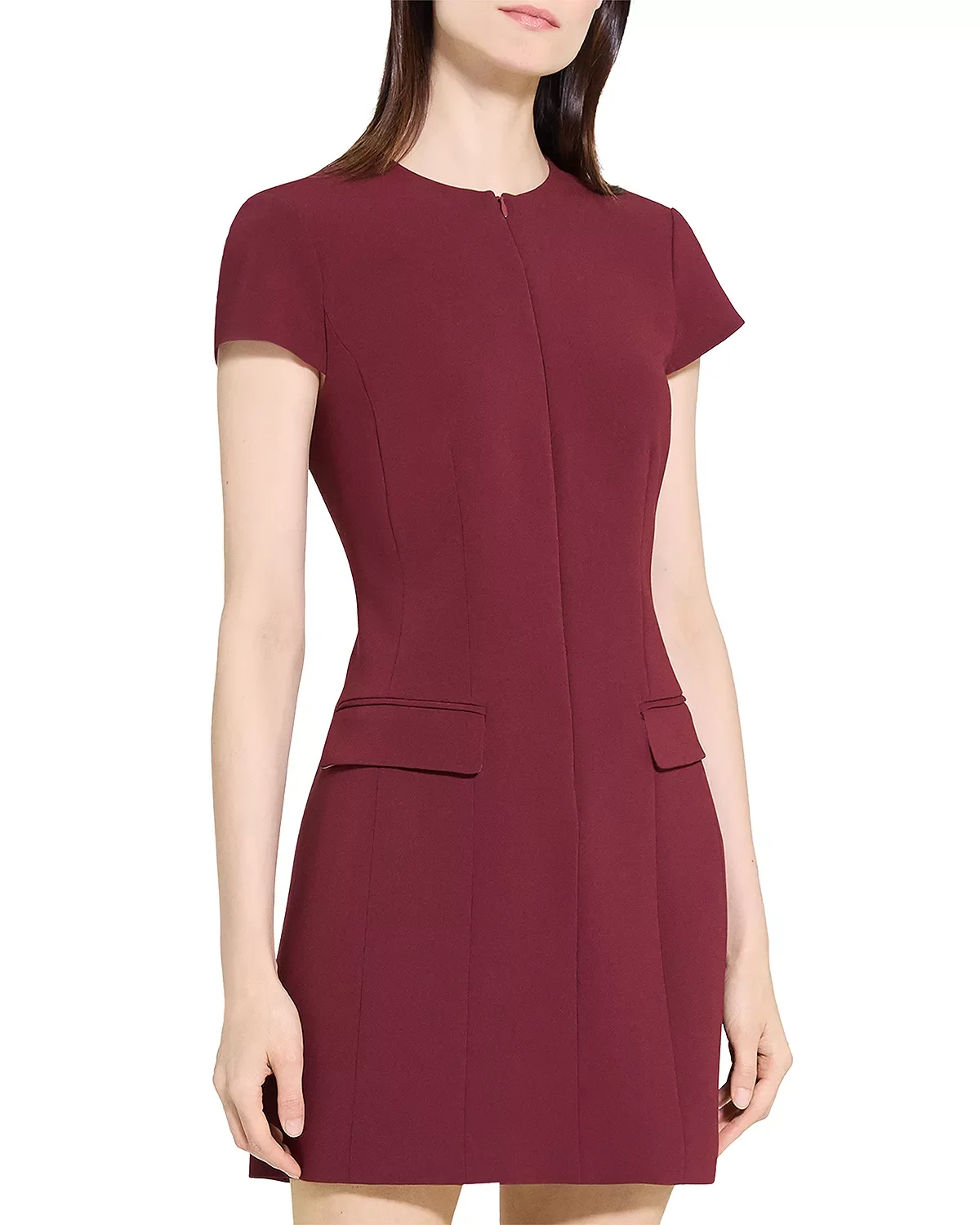 PRODUCT DETAILS - Round neck - Short sleeves - Sculpted teacup silhouette - Concealed front zipper closure - Two flap pockets at hips - Imported Web ID: 5684586 MATERIAL & CARE - 70% triacetate/30% polyester - Dry clean