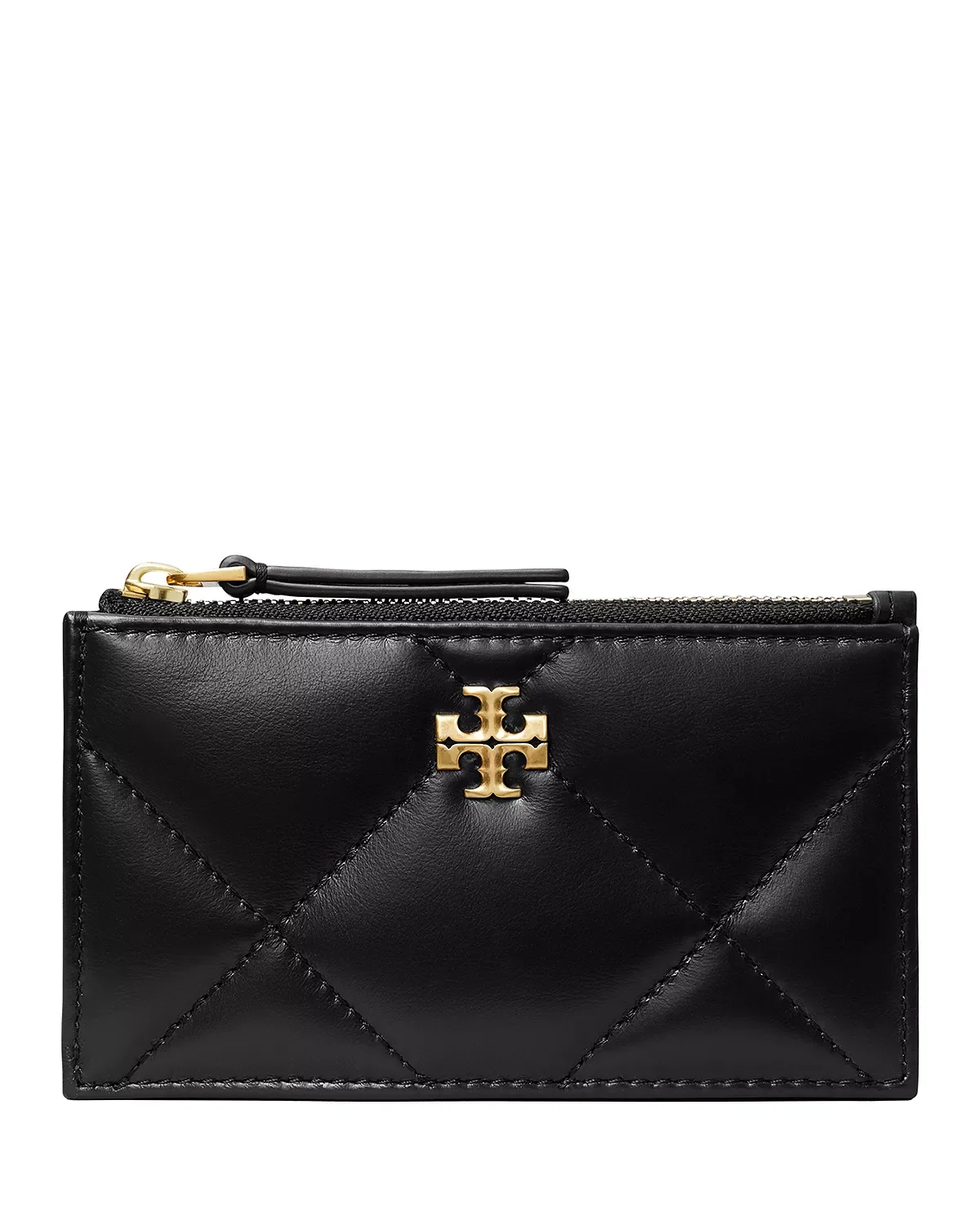 SIZE & FIT - Founded in 2004 in New York City, Tory Burch is an American luxury brand known for timeless pieces and rich storytelling that evokes optimism and joy. Tory is a fashion designer who draws inspiration from her parents' effortless style, the - worlds of travel, art and interiors, and women globally. The Tory Burch collections include ready-to-wear, handbags, footwear, accessories, jewelry, and beauty. Empowering women is the company's guiding principle, underpinning the design - philosophy and company culture, and driving the work of the Tory Burch Foundation. PRODUCT DETAILS - Dimensions: 5.2"W x 3"H - Zip closure - Four exterior card slots & zip compartment - Quilted diamond pattern - Gold-tone hardware - Lined - Main: leather; lining: 66% polyester/34% rayon - Imported Web ID: 5833208