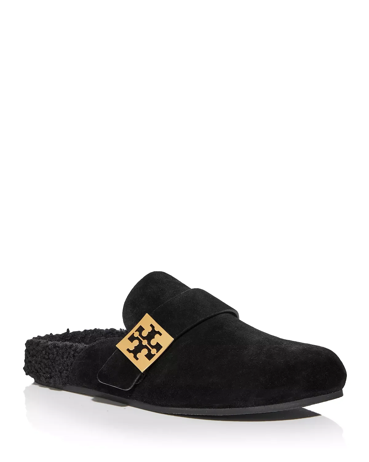 SIZE & FIT - Founded in 2004 in New York City, Tory Burch is an American luxury brand known for timeless pieces and rich storytelling that evokes optimism and joy. Tory is a fashion designer who draws inspiration from her parents' effortless style, the - worlds of travel, art and interiors, and women globally. The Tory Burch collections include ready-to-wear, handbags, footwear, accessories, jewelry, and beauty. Empowering women is the company's guiding principle, underpinning the design - philosophy and company culture, and driving the work of the Tory Burch Foundation. PRODUCT DETAILS - Fits true to size, order your normal size - Round toe - Slip on - Hardware detailing - 0.19" heel - Genuine shearling, origin: Italy, dyed - Shearling/leather upper and lining, rubber sole - Imported Web ID: 5249062