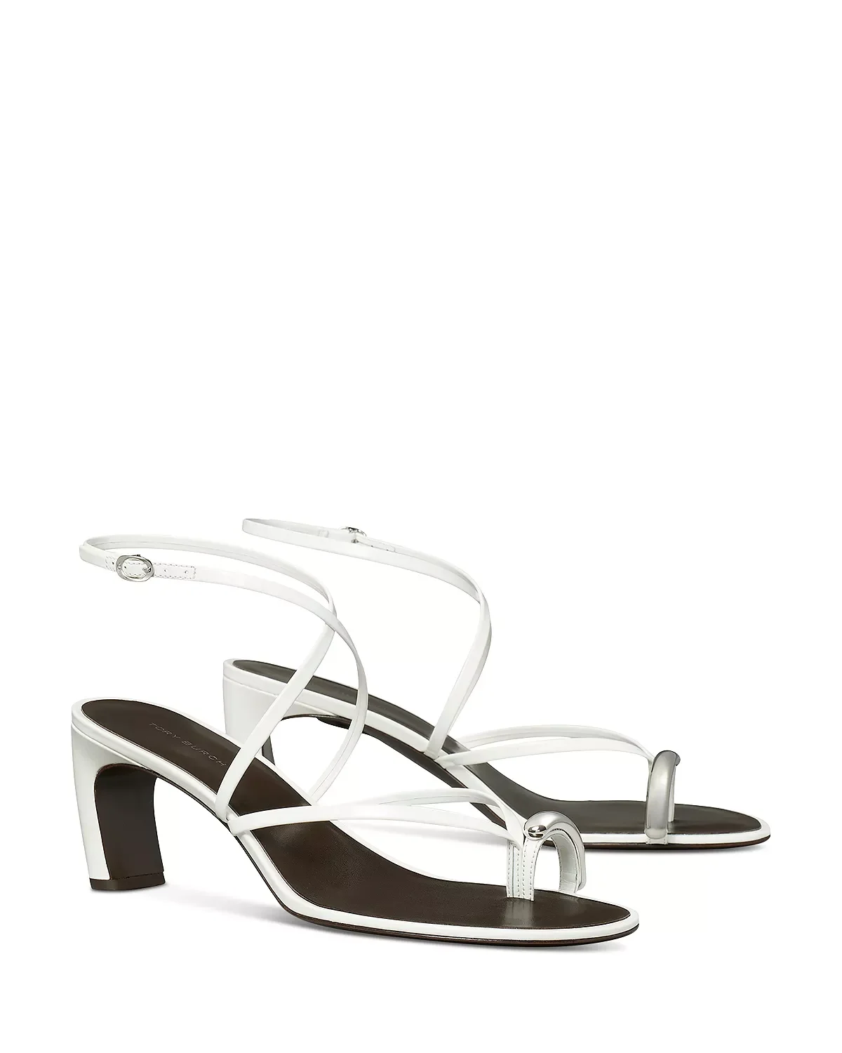 SIZE & FIT - Founded in 2004 in New York City, Tory Burch is an American luxury brand known for timeless pieces and rich storytelling that evokes optimism and joy. Tory is a fashion designer who draws inspiration from her parents' effortless style, the - worlds of travel, art and interiors, and women globally. The Tory Burch collections include ready-to-wear, handbags, footwear, accessories, jewelry, and beauty. Empowering women is the company's guiding principle, underpinning the design - philosophy and company culture, and driving the work of the Tory Burch Foundation. PRODUCT DETAILS - Fits true to size, order your normal size - Open toe - Buckled ankle strap - 2.56" heel - Leather upper and lining, leather/TPU sole - Imported Web ID: 5867024