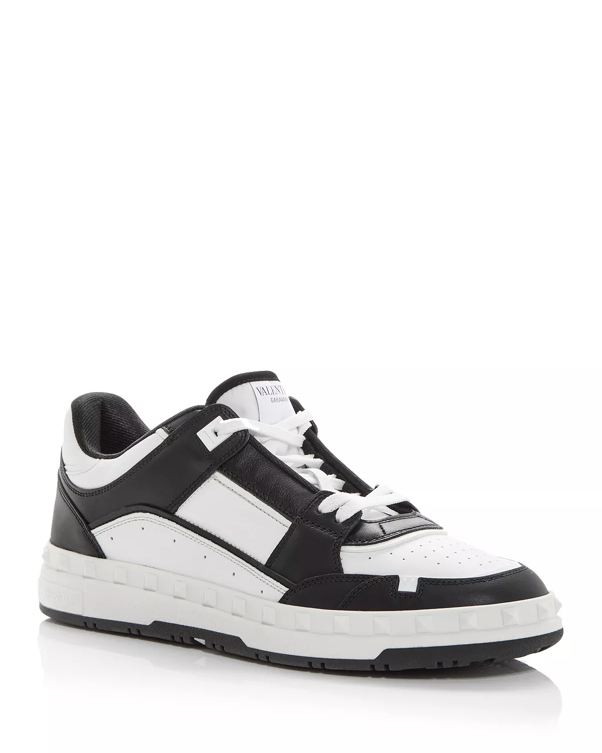 PRODUCT DETAILS - Fits true to size, order your normal size - Padded tongue and collar for optimal comfort - Lace up - Contrast leather detailing - Perforation detail at side and toe - Embossed signature pyramid stud detailing at sole edge - Logo at tongue, side and heel - Leather upper, fabric lining, rubber sole - Made in Italy Web ID: 4814413