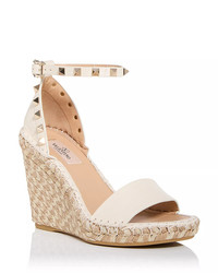 PRODUCT DETAILS - Fits true to size, order your normal size - Open toe - Buckled ankle strap - Signature pyramid stud detailing - Braided jute midsole - 4" wrapped wedge heel, 0.5" platform, feels like 3.5" heel - Leather upper and lining, rubber sole - Made in Italy Web ID: 5259867