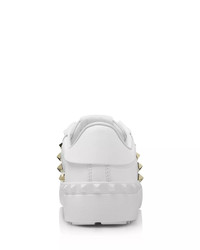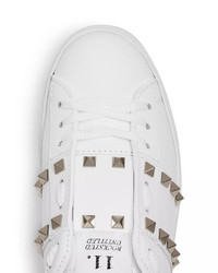 SIZE & FIT - Elegant. Feminine. Glamorous. Founded in 1960 by Valentino Garavani and Giancarlo Giammetti, Valentino Garavani is one of the most coveted design houses in the world. - Beloved for its head-turning red-carpet creations, the maison represents the pinnacle of Italian style. - Under the creative direction of Pierpaolo Piccioli, talented artisans craft the brand’s exceptional shoes and handbags in sumptuous leathers with iconic Rock Studs—signature elements of the legendary brand. PRODUCT DETAILS - Fits small, order a half size up - Padded collar for optimal comfort - Lace up - Signature pyramid stud details at tongue and sides - Embossed pyramid stud details at heel - Logo at tongue - Leather upper and lining, rubber sole - Made in Italy Web ID: 3472747