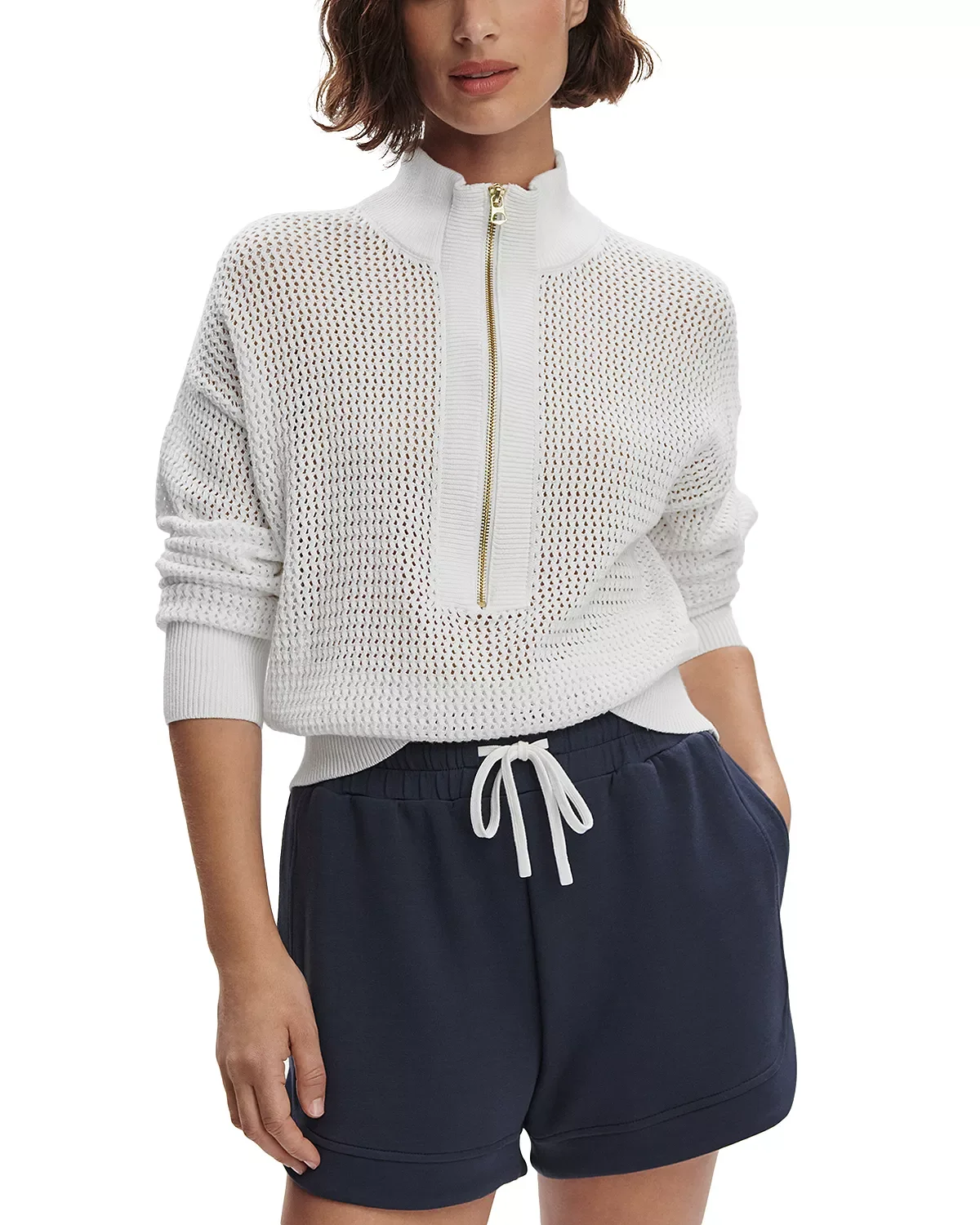 PRODUCT DETAILS - High ribbed neck - Long sleeves, dropped shoulders - Half-zip closure - Textured honeycomb knit - Imported Web ID: 5972985 MATERIAL & CARE - 100% cotton - Machine wash