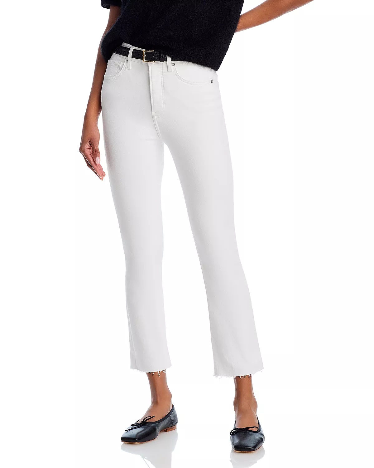 Carly Raw Hem High Rise Kick Flare Cropped Jeans in White