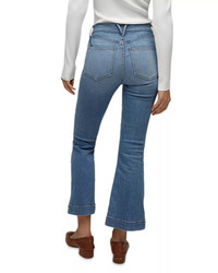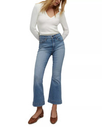 SIZE & FIT - Fits true to size, order your normal size - High rise: 11.5" - Ankle inseam: 28" - Leg opening: 19" - All measurements based on a size 27 - Model measurements: 5'10" height, 33.5" bust, 23.5" waist, 34.5" hips, wearing a size 27 PRODUCT DETAILS - Zip fly with button closure, five-pocket silhouette - Contrast stitching, bronze-tone logo hardware, belt loops - Faded, whiskered - Flare-leg silhouette, trouser hems - Made in USA Web ID: 5013844 MATERIAL & CARE - 92% cotton/6% elastomultiester/2% elastane - Machine wash