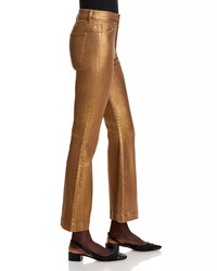 Carson High Rise Coated Ankle Flare Jeans in Antique Brass