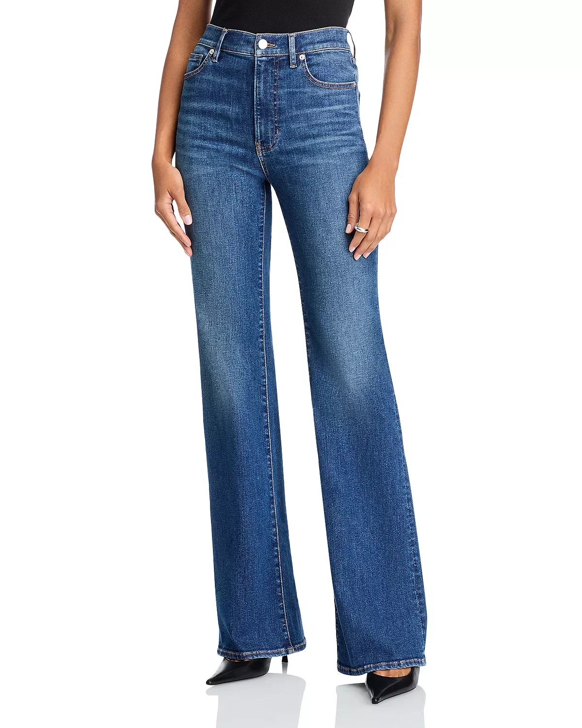 PRODUCT DETAILS - Zip fly with button closure, five-pocket silhouette - Contrast stitching, silver-tone hardware, belt loops - Whiskered, faded - Wide-leg silhouette - Imported Web ID: 5752294 MATERIAL & CARE - 86% cotton/10% polyester/4% spandex - Machine wash