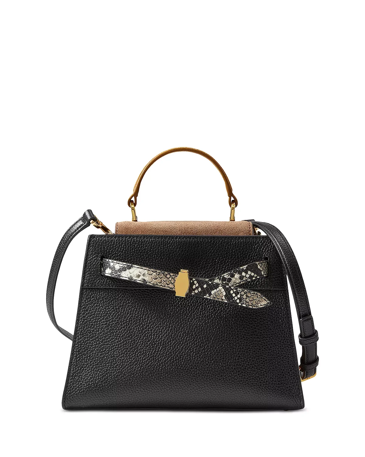 PRODUCT DETAILS - Top handle, 3.3" drop - Removable, adjustable crossbody strap, 18.9" drop - Dimensions: 9.8"W x 3"D x 7.3"H - Magnetic snap closure - Interior zip pocket - Polyester lined - Leather; lining: polyester - Imported Web ID: 5733954