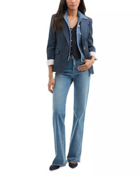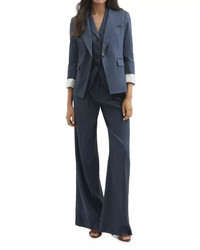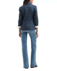 SIZE & FIT - Fits true to size, order your normal size - Approx. 27.75" length, 32" sleeves, based on a size 2 - Model measurements: 5'9" height, wearing a size 2 PRODUCT DETAILS - Notched lapel - Single-button closure - Long sleeves, buttoned cuffs - Flap hip pockets - Pinstriped fabric - Contrast-stripe cuffs and lining - Vent at center back hem - Compatible with Veronica Beard dickies - Imported Web ID: 5626572 MATERIAL & CARE - 78% cotton/22% polyamide; cuffs and lining: 100% viscose - Dry clean