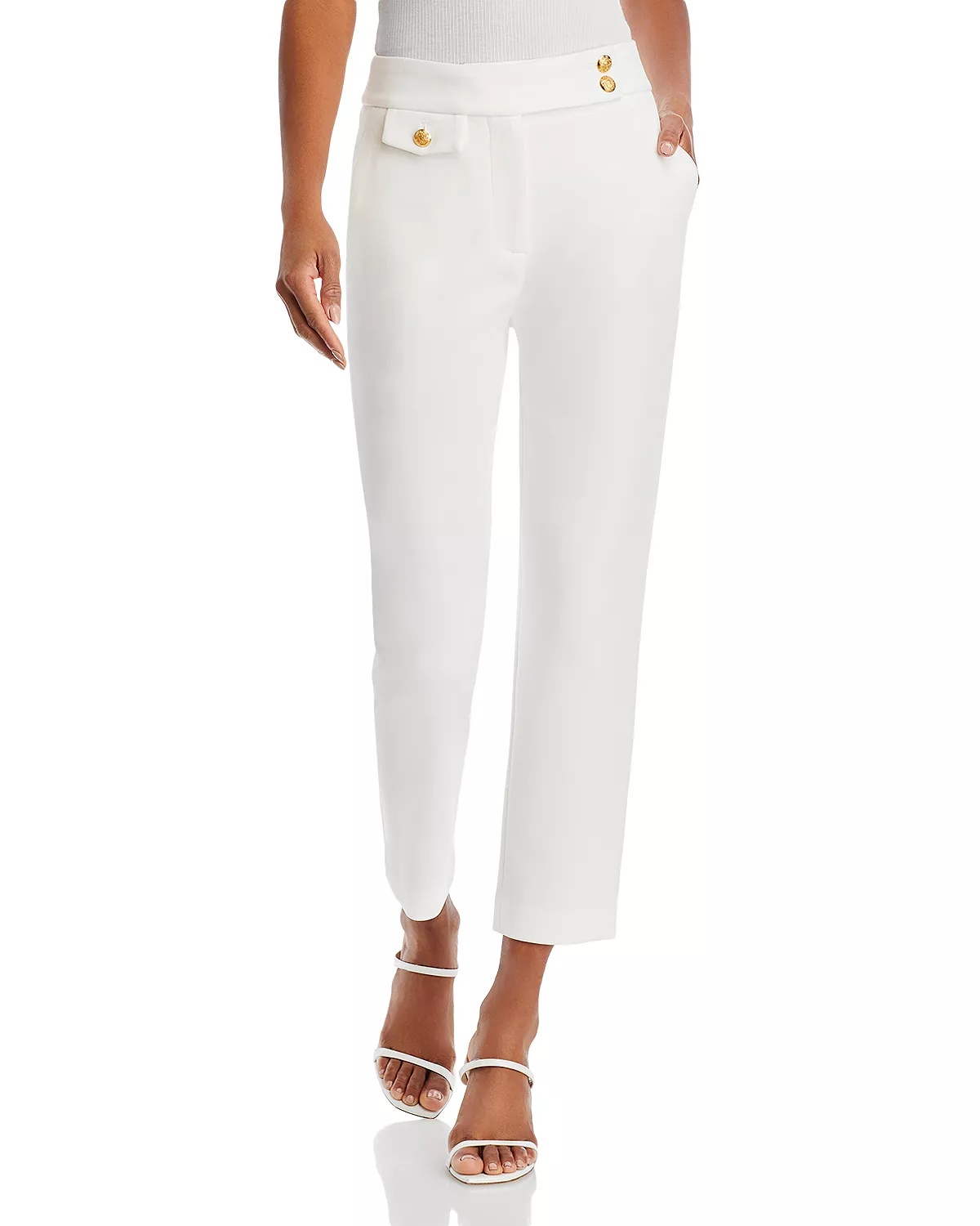 SIZE & FIT - Fits true to size, order your normal size - 11.25" rise, 27" inseam, based on a size 2 - Model measurements: 5'10" height, 33.5" bust, 23.5" waist, 34.5" hips, wearing a size 2 PRODUCT DETAILS - Zipper and asymmetrical button closure - On-seam pockets at front, button flap pocket at waist, welt pockets at back - Made in USA of Imported Materials Web ID: 4310501 MATERIAL & CARE - Body: Polyester/viscose/cotton/elastane; lining: polyester - Dry clean