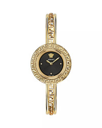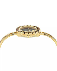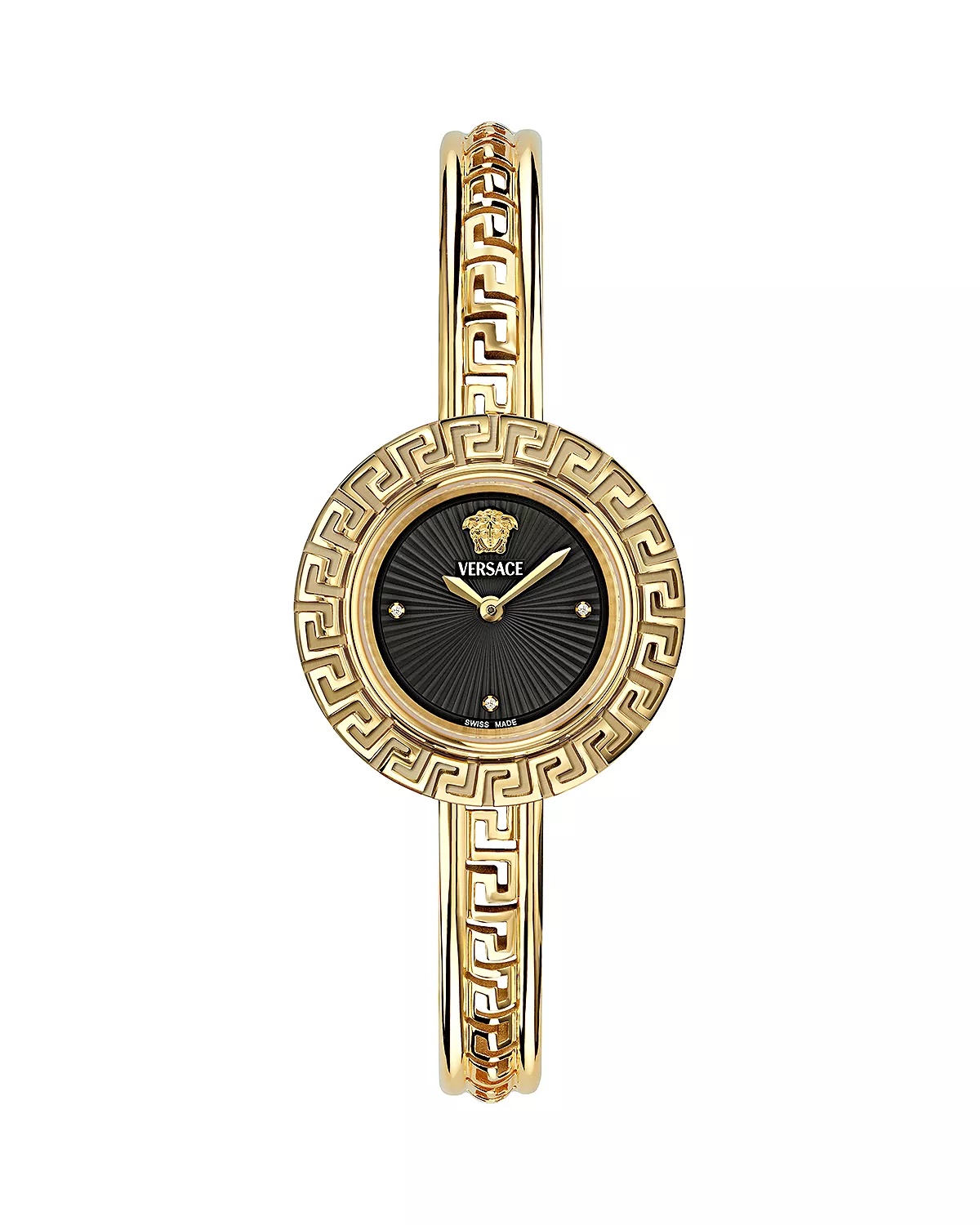 PRODUCT DETAILS - Stone count: 3 diamonds - Diamonds: 0.08 ct. t.w. - Gold-tone IP; stainless steel; sapphire crystal - Case size: 28mm - Jewelry clasp closure - Water resistant to 3 ATM - Swiss quartz movement - Black dial with diamond indices - Semi-bangle gold-tone stainless steel bracelet - Manufacturer's 2-year limited warranty - Photo may have been enlarged and/or enhanced. - Made in Switzerland Web ID: 5052367