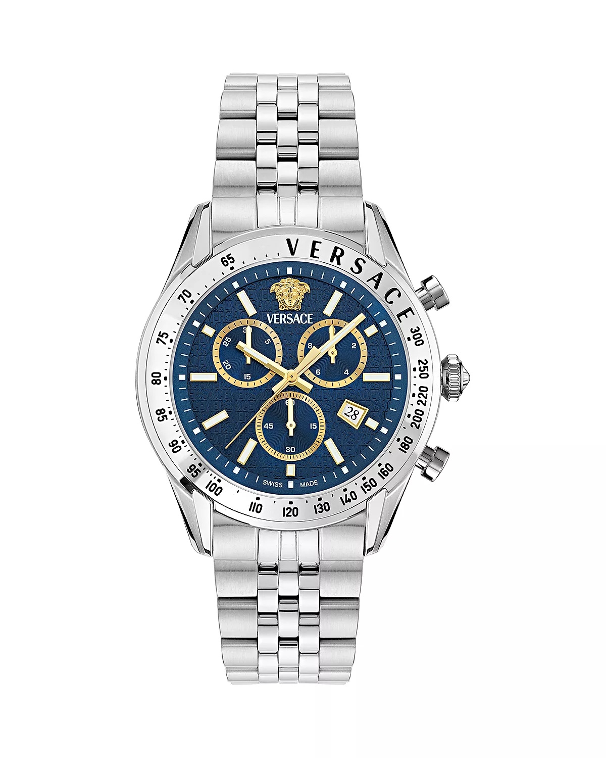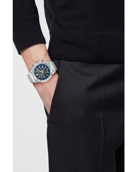 PRODUCT DETAILS - Stainless steel; sapphire crystal - Case size: 44mm - Deployant clasp closure - Water resistant to 5 ATM - Swiss quartz chronograph movement - Blue dial with date display at 4 o'clock - 3 sub-dials - Stainless steel link bracelet - Manufacturer's two-year limited warranty - Photo may have been enlarged and/or enhanced. - Made in Switzerland Web ID: 5052333