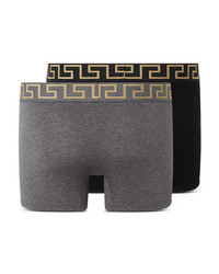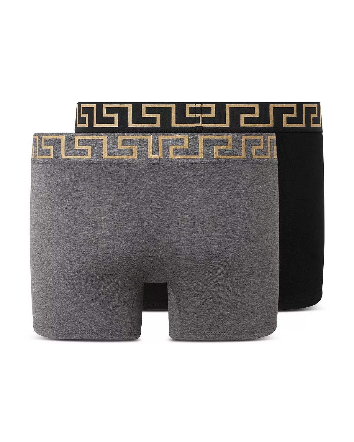 Two-Pack Black & Gray Greca Border Boxer Briefs