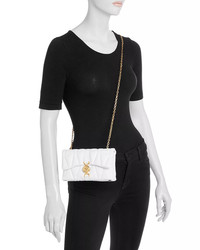 PRODUCT DETAILS - Chain crossbody strap, 22" drop - Dimensions: 7.5"W x 2.5"D x 4.75"H - Magnetic snap flap closure - Two interior compartments - Quilted design - Gold-tone hardware - Logo hardware at front - Model measurements: 5'10" height, wearing a size 4 or small - Fabric lining - Leather - Made in Italy Web ID: 5296379