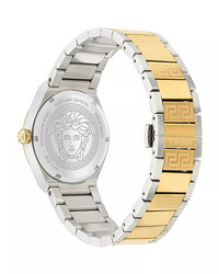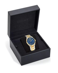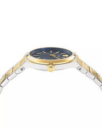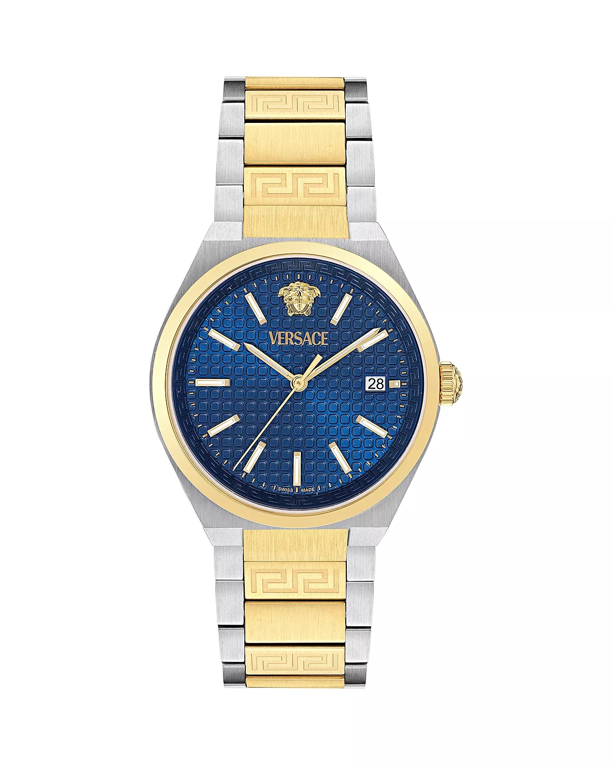 PRODUCT DETAILS - Gold IP; stainless steel; sapphire crystal - Case size: 39mm - Deployant clasp closure - Water resistant to 5 ATM - Swiss quartz movement - Blue dial with date display at 3 o'clock - Gold IP bezel - Two-tone stainless steel link bracelet - Manufacturer's two-year limited warranty - Photo may have been enlarged and/or enhanced - Made in Switzerland Web ID: 5465494