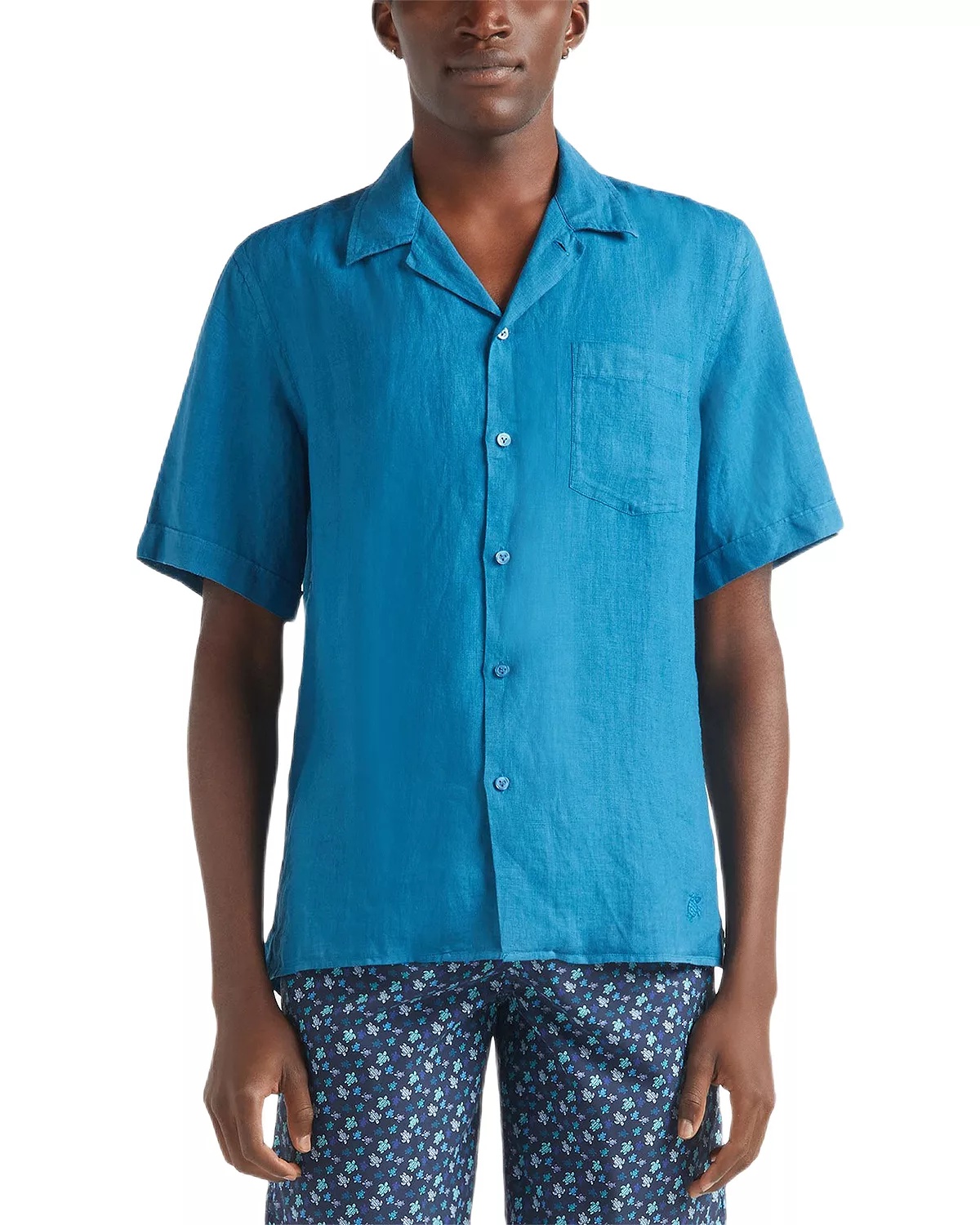 SIZE & FIT - Fits true to size, order your normal size - Model measurements: 6'2" height, 38" chest, 30" waist, 34" inseam PRODUCT DETAILS - Spread collar - Short sleeves - Front button closures - Left chest pocket - Imported Web ID: 4638397 MATERIAL & CARE - 100% linen - Machine wash or hand wash