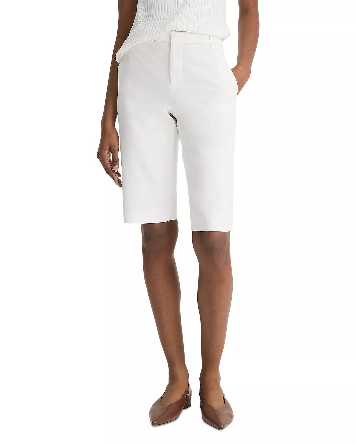 SIZE & FIT - Fits true to size, take your normal size - Designed for a slim fit - 11" rise, 13.75" inseam, based on a size 4 - Model measurements: 5'10" height, 33.5" bust, 23.5" waist, 34.5" hips, wearing a size 4 PRODUCT DETAILS - Hidden hook-and-bar closure with zip fly - Belt loops - Slant hip pockets, welt back pockets - Bermuda-length hem - Imported Web ID: 5448228 MATERIAL & CARE - 98% cotton/2% spandex - Machine wash