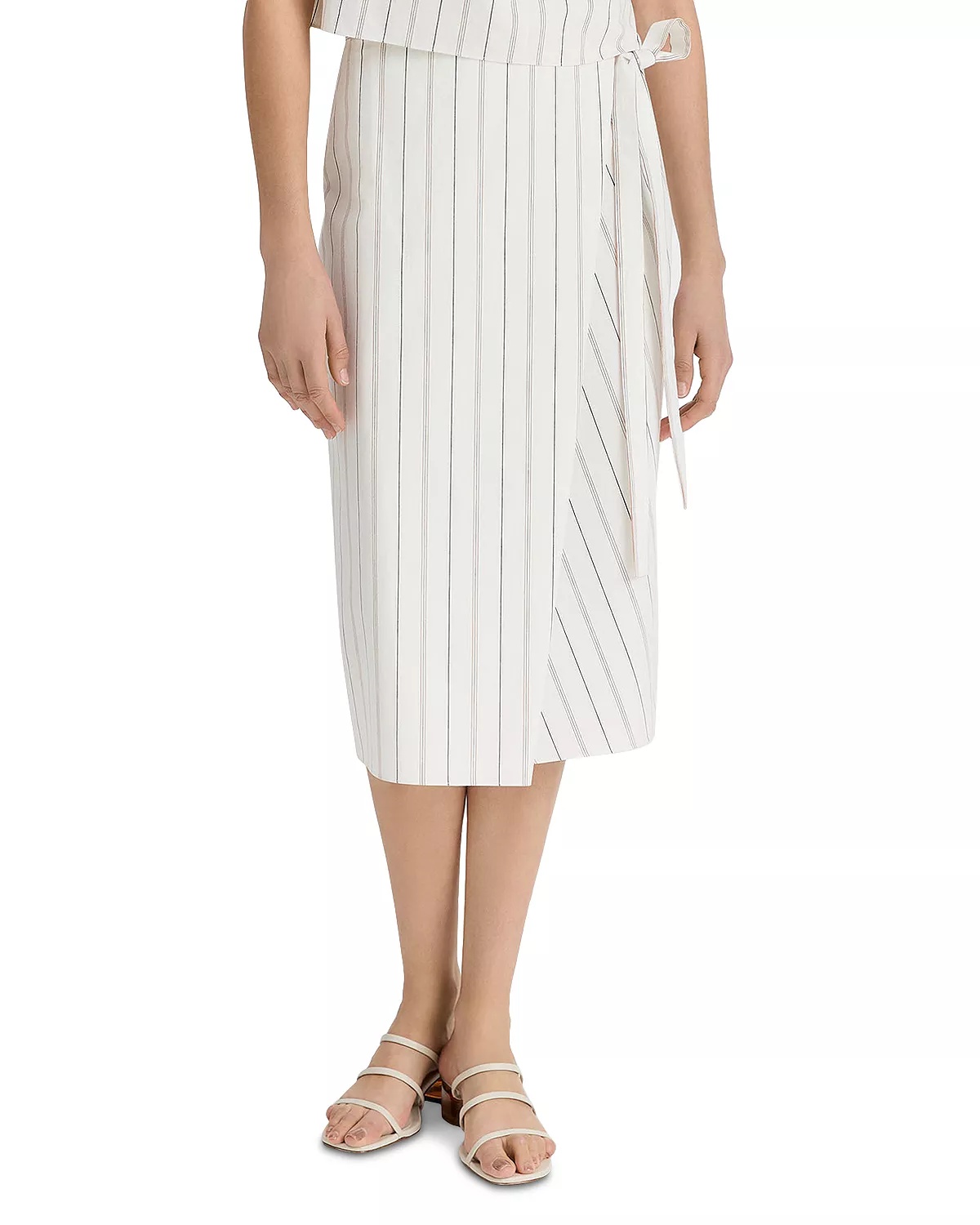 SIZE & FIT - Fits true to size, order your normal size - 29.5" length, based on a size 4 - Model measurements: 5'10" height, 33" bust, 25" waist, 35" hips, wearing a size 4 PRODUCT DETAILS - Self-tie waist - Wrap style - Allover striped print - Imported Web ID: 5469228 MATERIAL & CARE - 100% cotton - Hand wash or dry clean