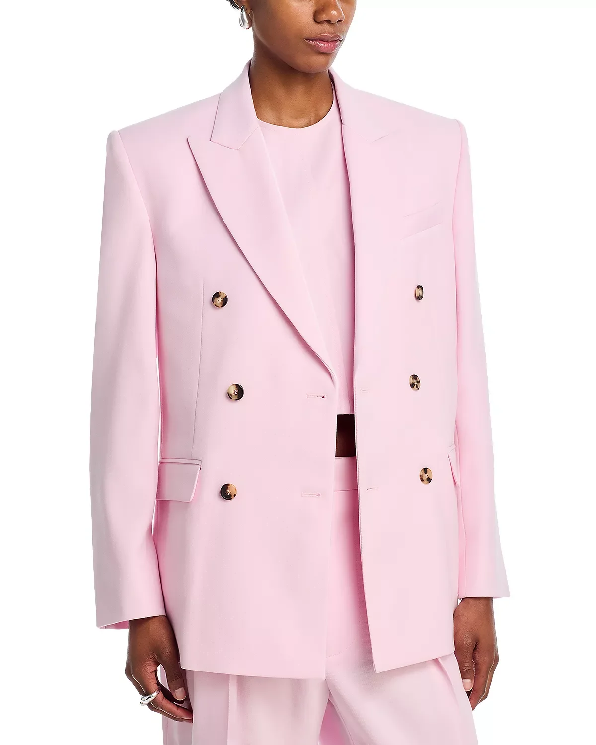 SIZE & FIT - Runs large, order one size down - Designed for an oversized fit - Model measurements: 5'8.5" height, wearing a size small PRODUCT DETAILS - Notch lapel - Long sleeves - Front double-breasted button closures - Chest welt pocket, side flap pockets - Lined - Imported Web ID: 5479538 MATERIAL & CARE - Shell: 100% virgin wool; lining: 100% cupro - Dry clean