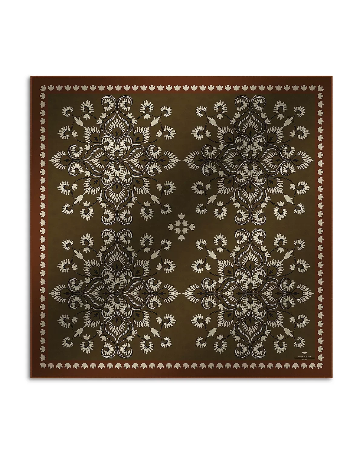 PRODUCT DETAILS - 49.2" W x 49.2" L - Lightly fringed edges - Allover pattern with contrast border print - Imported Web ID: 5903032 MATERIAL & CARE - 80% wool/20% silk - Dry clean