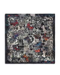 SIZE & FIT - Fits true to size, order your normal size; if between sizes, order one size up PRODUCT DETAILS - 35.4"L x 35.4"W - Black silk scarf with butterfly and lace print - Made in Italy Web ID: 5118129 MATERIAL & CARE - 100% silk - Hand wash or machine wash
