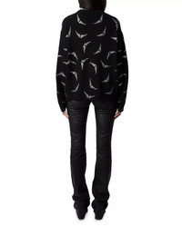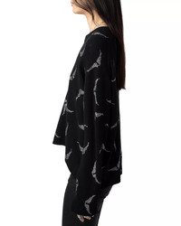 SIZE & FIT - Fits true to size, order your normal size - Designed for a relaxed fit PRODUCT DETAILS - Crewneck - Long sleeves, drop shoulders - Thumbhole cuffs - Pullover style - Diamante wings throughout - Imported Web ID: 5118079 MATERIAL & CARE - 100% cashmere - Hand wash or machine wash