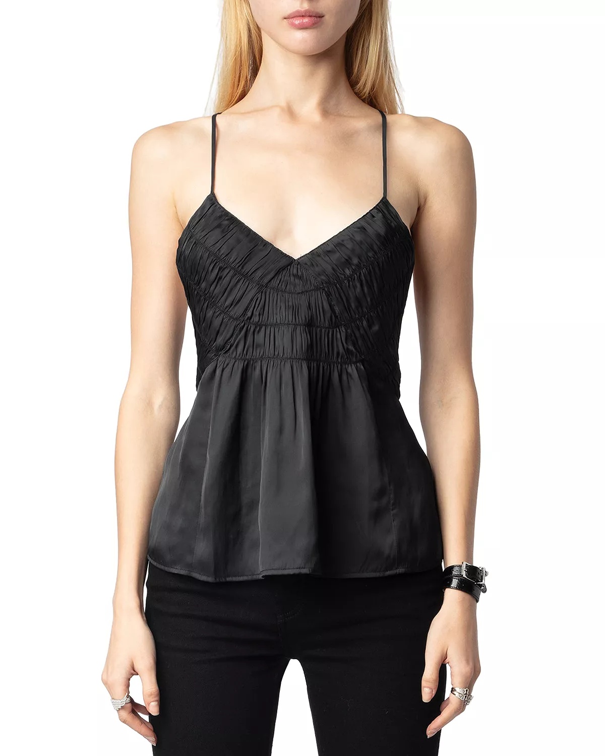 SIZE & FIT - Fits true to size, order your normal size - Designed for a relaxed fit PRODUCT DETAILS - V-neck - Pullover style - Sleeveless with cross-back adjustable straps - Pleat details at front and back - Imported Web ID: 5381511 MATERIAL & CARE - 100% polyester - Hand wash