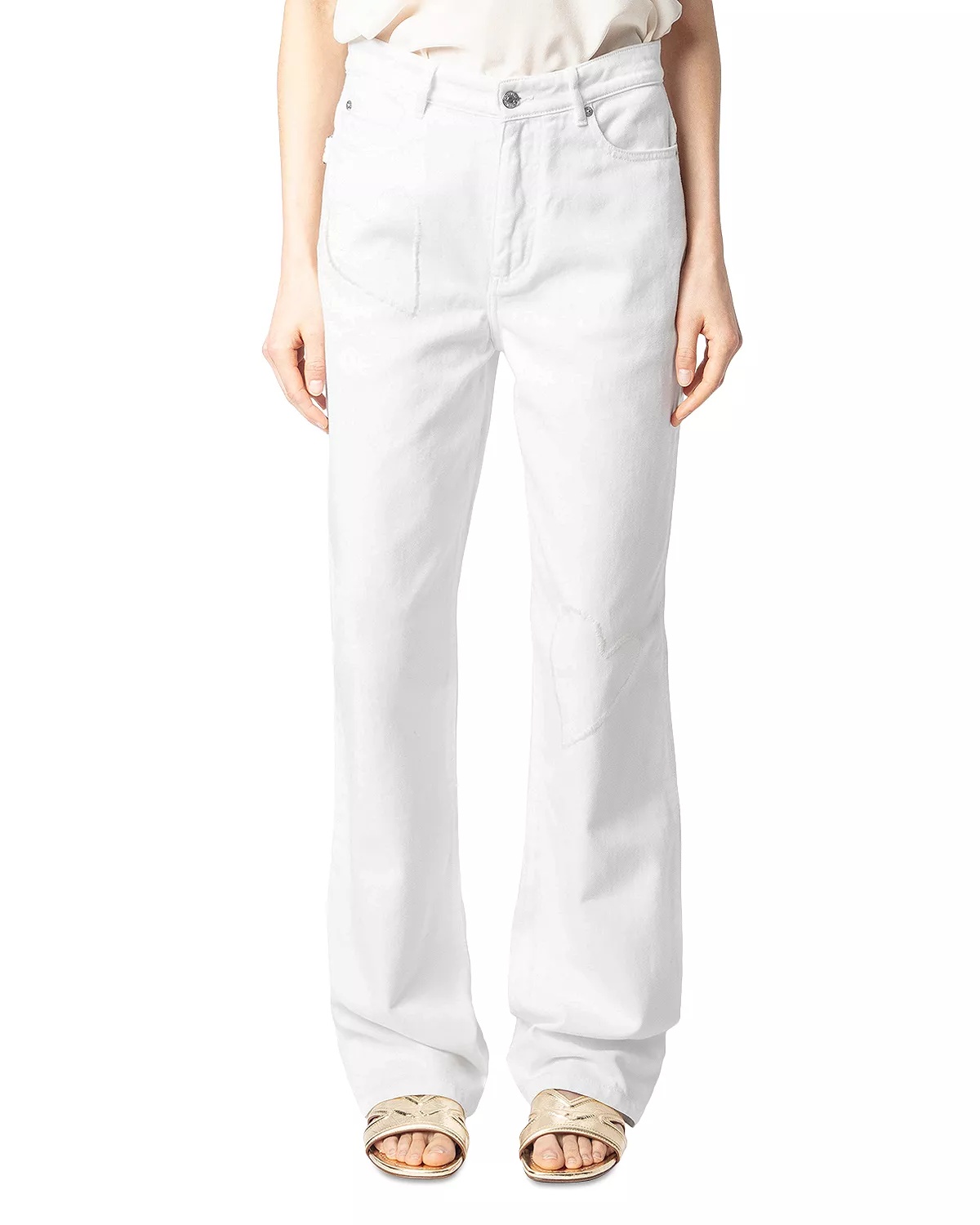 SIZE & FIT - Fits true to size, order your normal size - Rise: 10" - Inseam: 33" - Leg opening: 9.75" - All measurements based on a size 27 PRODUCT DETAILS - Zip fly with button closure, five-pocket silhouette - Tonal stitching, silver-tone hardware, belt loops - Embroidered heart at leg, side tab - Straight-leg silhouette - Imported Web ID: 5381553 MATERIAL & CARE - 100% cotton - Machine wash