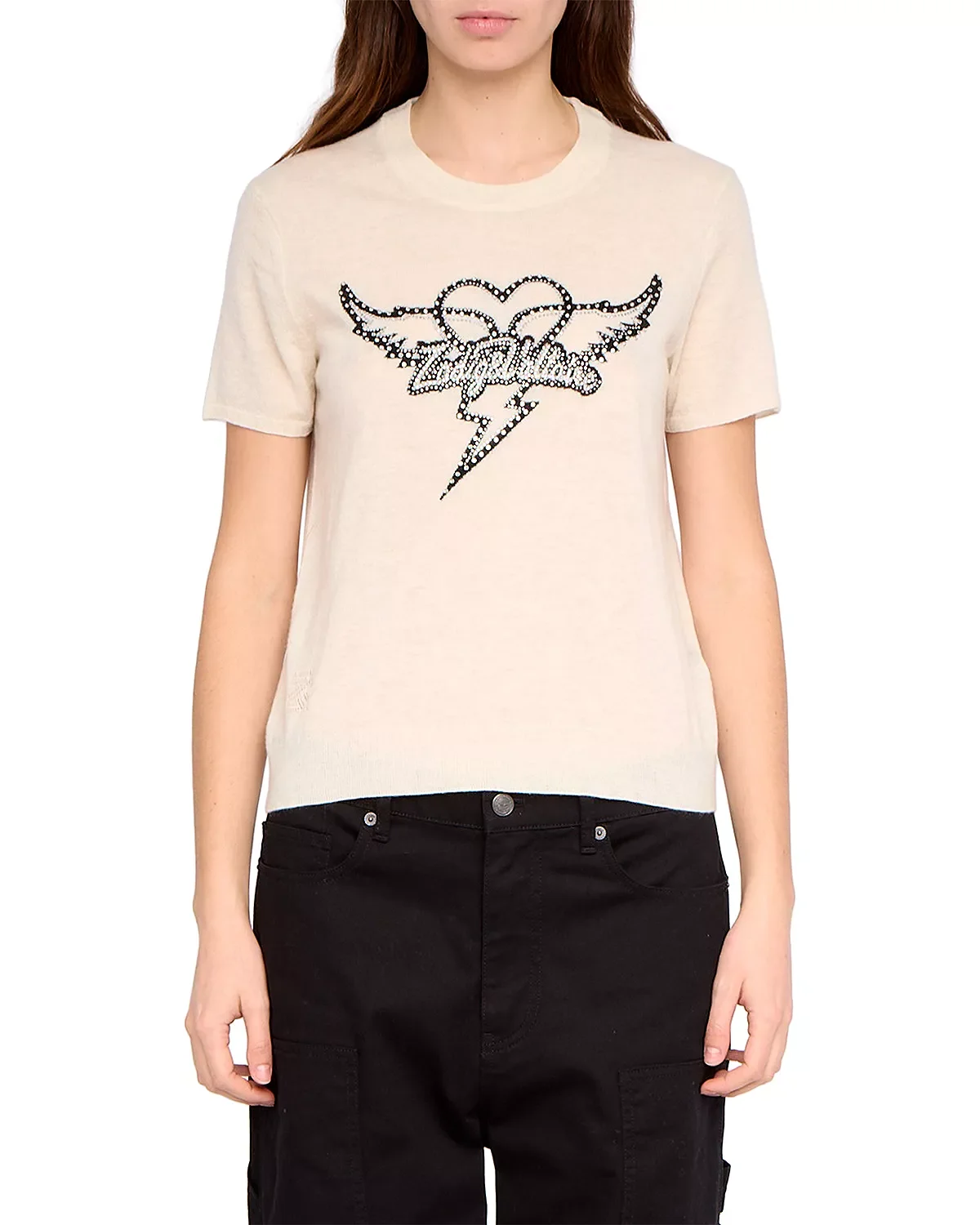 SIZE & FIT - Fits true to size, order your normal size PRODUCT DETAILS - Round neck - Short sleeves - Pullover style - Intarsia pattern and rhinestones - Imported Web ID: 5777570 MATERIAL & CARE - 100% cashmere - Hand wash