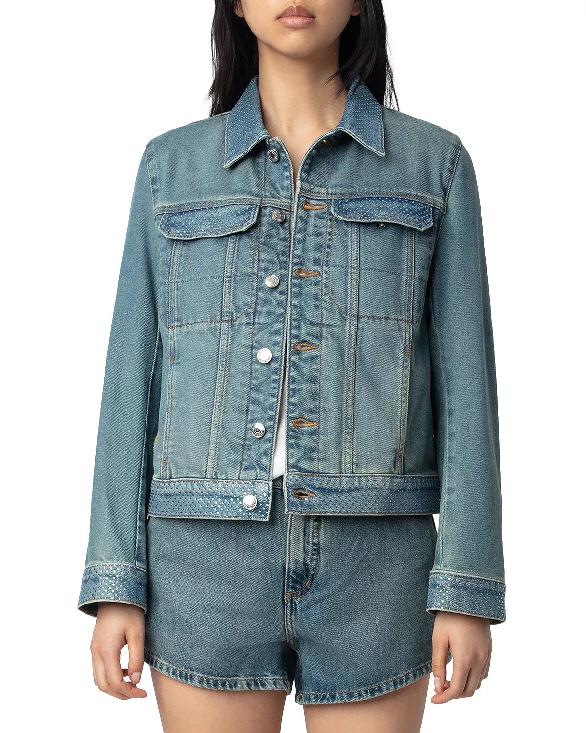 SIZE & FIT - Fits true to size, order your normal size - Designed for a relaxed fit PRODUCT DETAILS - Spread collar - Button front closures - Long sleeves with button at cuffs - Flap pockets at chest - Slant pockets at sides - Rhinestone trim at collar, button flaps, cuffs and hem - Imported Web ID: 5381558 MATERIAL & CARE - 99% cotton/1% elastane - Machine wash
