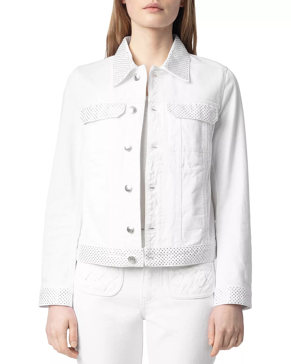 SIZE & FIT - Fits true to size, order your normal size PRODUCT DETAILS - Point collar - Long sleeves, buttoned cuffs - Front button closures - Rhinestones at collar, pocket flaps, cuffs and hem - Flap pockets at chest, slit pockets at sides - Imported Web ID: 5381563 MATERIAL & CARE - 100% cotton - Machine wash