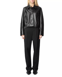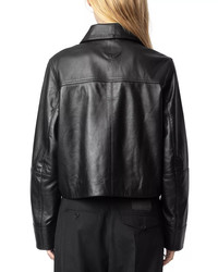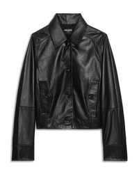 SIZE & FIT - Fits true to size, order your normal size - Designed for a relaxed fit PRODUCT DETAILS - Spread collar - Button front closures - Long sleeves - Button flap pocket at sides - Embossed wings at back - Lined - Made in India Web ID: 5381473 MATERIAL & CARE - Leather; lining: 100% polyester - Professional leather clean